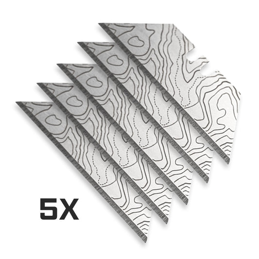 Includes 5X Tajima V-REX II Premium Tempered Utility Knife Razor Blades with topo map design...
