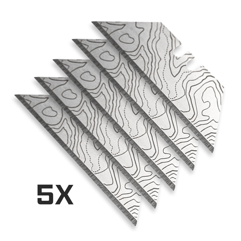 - Includes 5X High Quality Utility Knife Razor Blades with topo map design