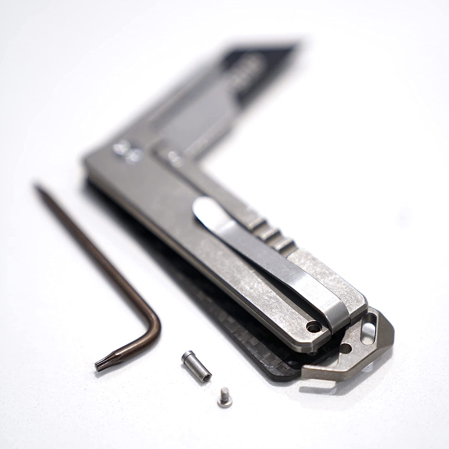 Looking to expand your TiRant RAZOR and turn it into more than just an amazing utility knife? Look no further! This pry bar adds functionality for small pry-bar tasks and works on all V1/V2/V3 TiRant RAZOR Knives since 2020. IMPORTANT: disassembly WILL be necessary and you will need to carefully heat up the small T6 torx and securely hold BOTH sides when unscrewing the rear spacer screw. You will also need to reapply a drop of blue loctite-242 when you re-tighten screws so screws won't prematurely fall out during use.
