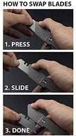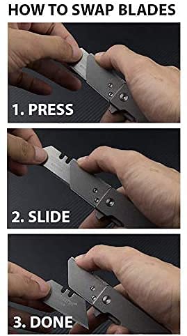 - SUPER SLIM & LIGHTWEIGHT — This one of a kind design is one of the smallest usable folding pocket knife designs that doubles as a utility knife and opens up to a full 6” while utilizing generic utility knife blades that you can find at any hardware store! Featherweight CNC-Milled skeletonized Titanium 6AI-4V scales. Blade + knife together ONLY weigh 2.4oz / 68g. The slim titanium handle & deep carry clip makes this knife the #1 must-have EDC tool for anyone regularly using razor blades!