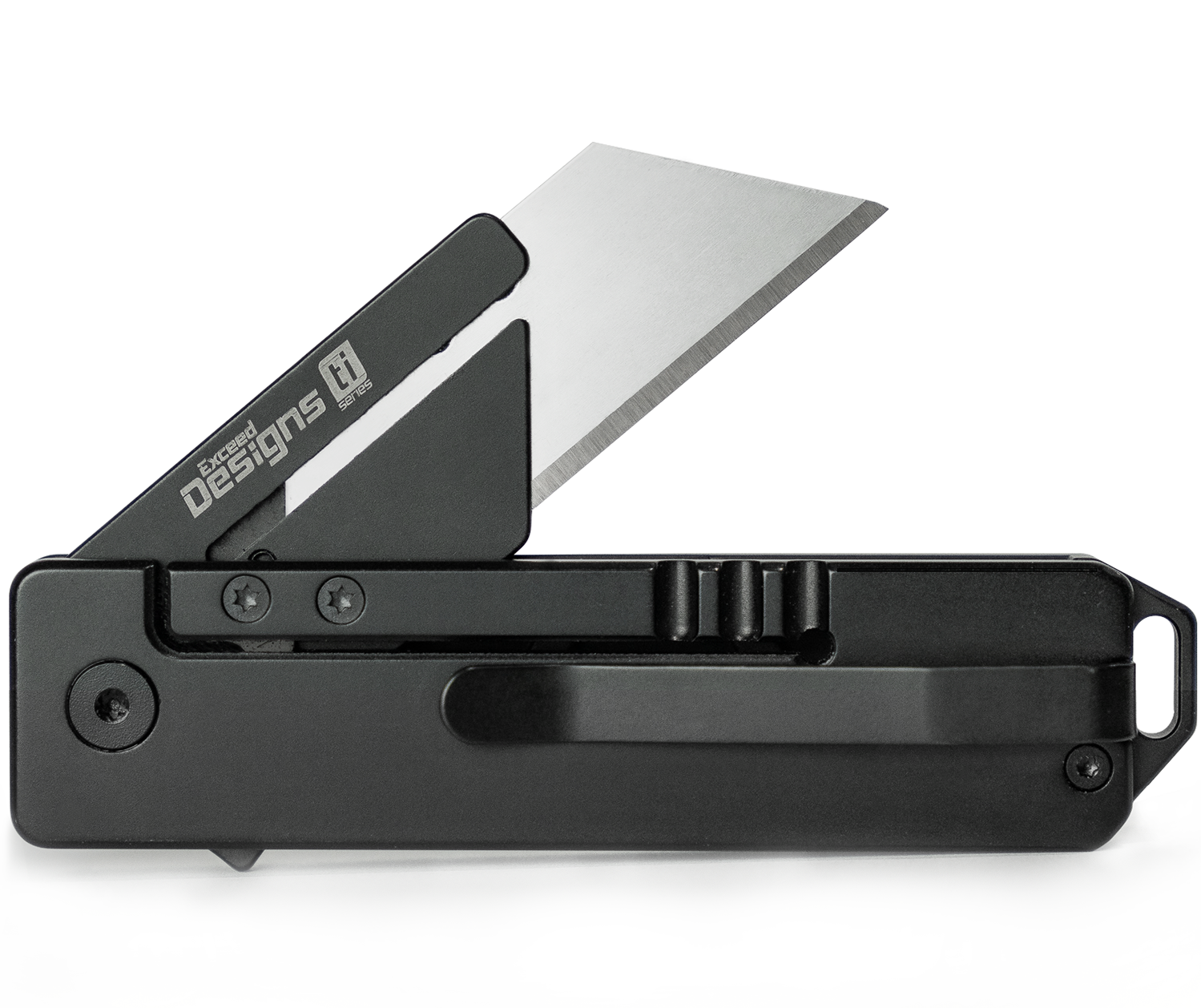 - The TiRant RAZOR V3 low-profile titanium utility knife from Exceed Designs is the #1 Ti EDC utility knife. Flipper action & QUICK-RELEASE blade lock with near-zero tolerance. Full brass caged ceramic ball bearing action. 6AI-4V Titanium stone washed scales & stainless stonewashed blade clasp. Customizations available SEPARATELY: Rear Pry-Bar Spacer, Mini-Clip, Carbon Fiber Handle, JET-BLACK color and more coming soon! This pocket knife utility knife tool is a must have for any EDC application!